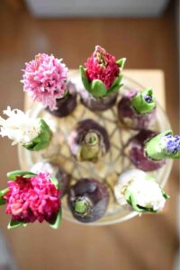 ピンク、白、赤、青 と咲き揃い、見ごたえがあります。よい香りがしてすてきな眺めです。厳寒の季節の私だけの楽しみです。