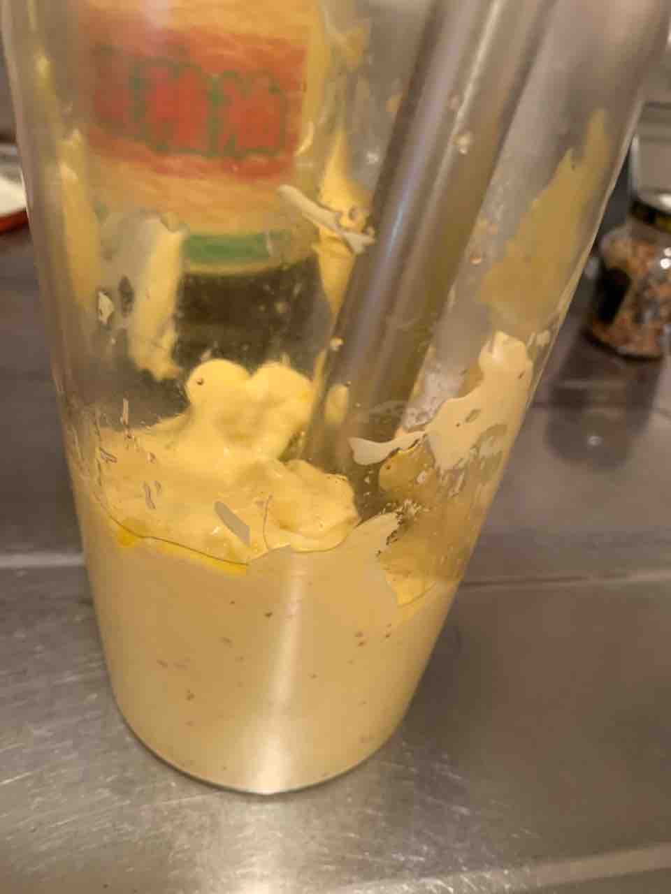 一度自分で作ってみたかったマヨネーズを作りました。菜種油にトリュフオイルを混ぜて、全卵と塩こしょう、粗挽きマスタード、千鳥酢を入れてマルチクイックで混ぜたら一瞬でした。ちょっと固かったので次回もう少し配合を調節します。コツはすべてを常温にすることです。すごくおいしかったので、今後はマヨネーズも手作りすると決めました。