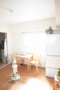 実際には、職業柄、キッチンには調理道具が所狭しと置かれ、モノが少ないとは必ずしも言いきれないと思います。