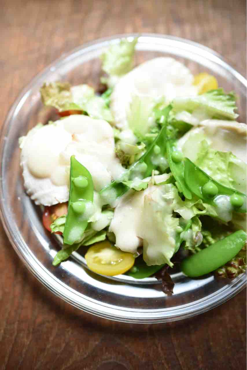 鶏ハム、サニーレタス、パクチー、スナップエンドウ、カラーミニトマト でいつものサラダも作りました。