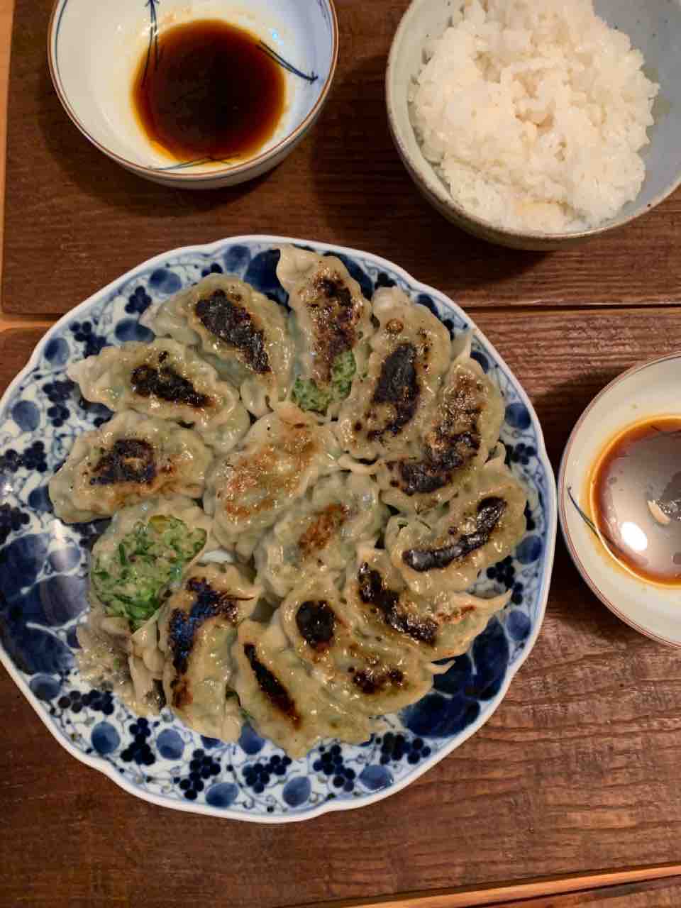 豚挽肉、春キャベツ、ニラ、長葱、椎茸 で餃子も作りました。すごくおいしかったです。