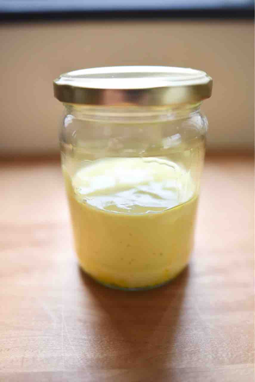 手作りマヨネーズも入れました。材料は、全卵1個、千鳥酢大さじ1, 塩胡椒、菜種油 1カップ(184g)。これをBRAUN のマルチクイックでガーッと混ぜるだけです。ちょっと残念なのは、びんの口にマルチクイックの先端が入りそうで入らなかったことです。マルチクイックの付属のカップで作ってびんに移し替えるのが少しだけ面倒でした。