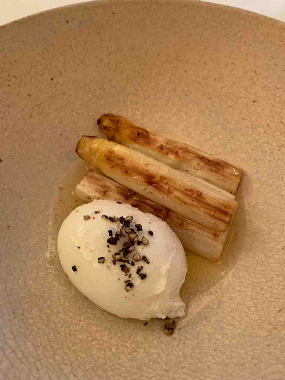 ホワイトアスパラガスに足利の卵をポーチドエッグにして合わせたもの。こちらも熱々で絶品でした。