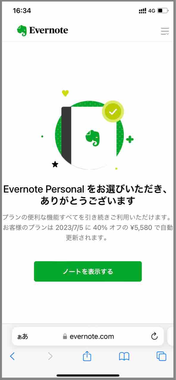 最近では、Evernote Personal というプランにしており、それには1年間に5200円支払っていました。