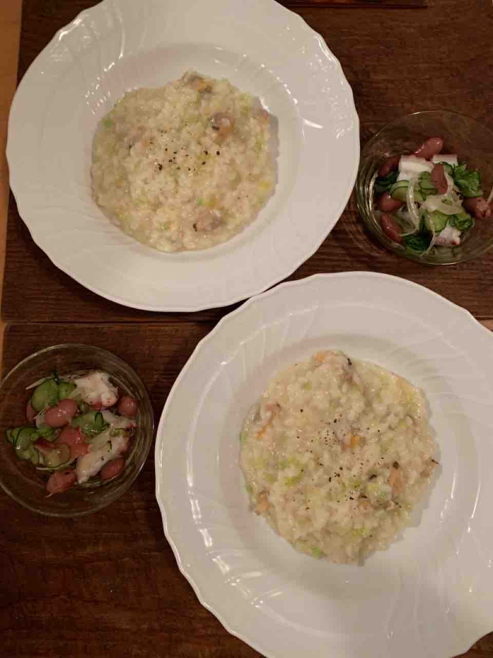 お友達が来て、アサリとブロッコリーの茎のリゾットを作ってくれたので一緒に食べました。すごくおいしかったです。