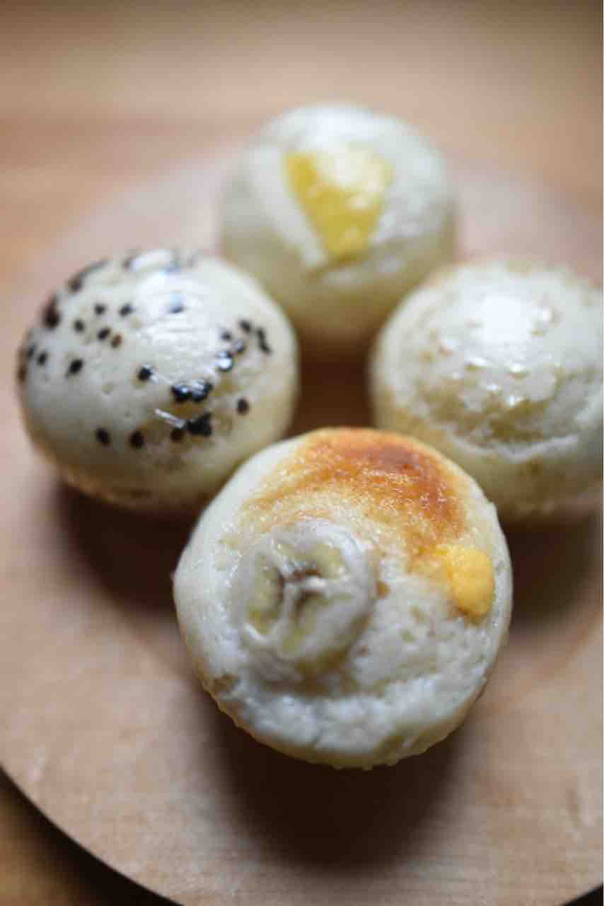 ここの蒸しパンは国産小麦と天然酵母で生地を作って蒸し上げているとのこと。種類がたくさんあって迷いましたが、ごまあん、つぶあん、バナナキャラメル、りんごクリームチーズ 味を買い求めました。