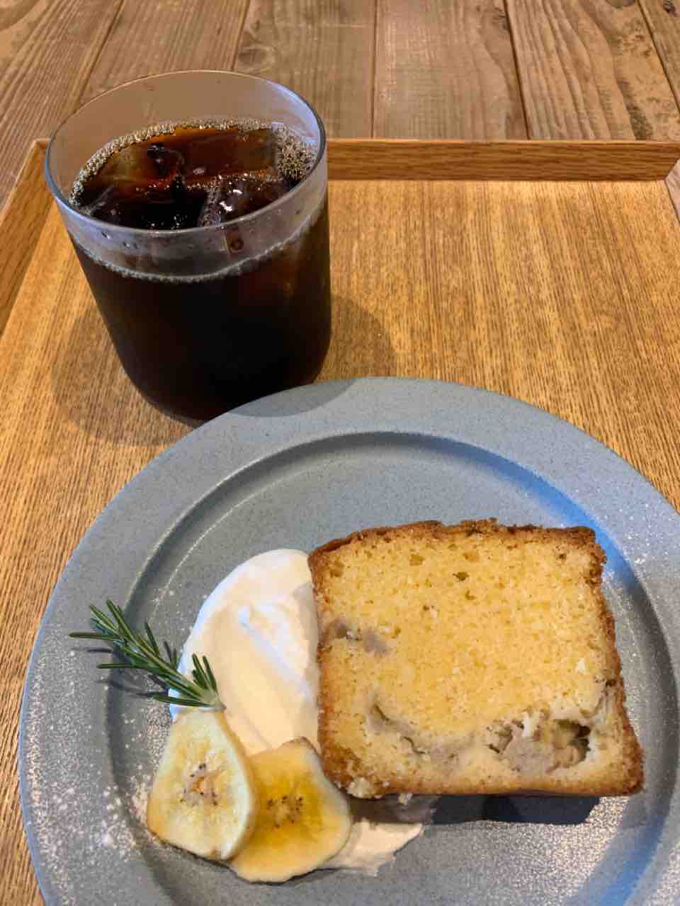 カフェスペースにて、パウンドケーキと水出しコーヒーを食べました。