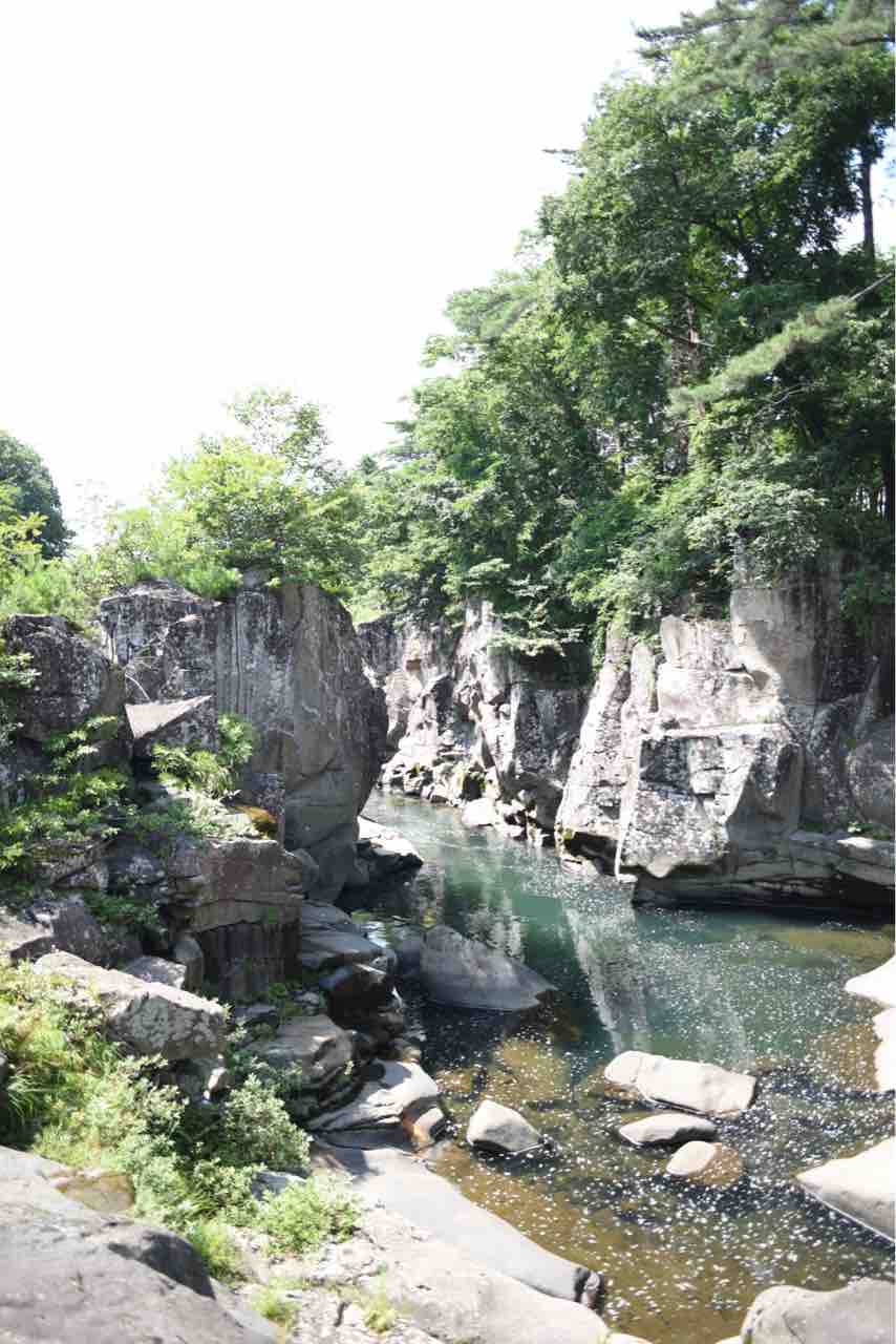渓谷の上からのぞき込んだ時のゴツゴツした岩と、水面の色のコントラストが美しいのですが。