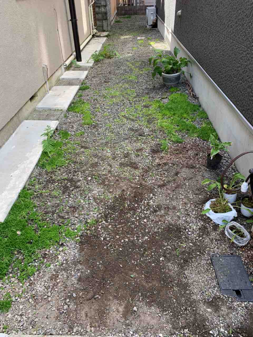 でも、朝夕はだんだんと涼しくなってきて、庭にも出られるようになったから、1か月ぶりに家の脇の通路の草取りをしました。