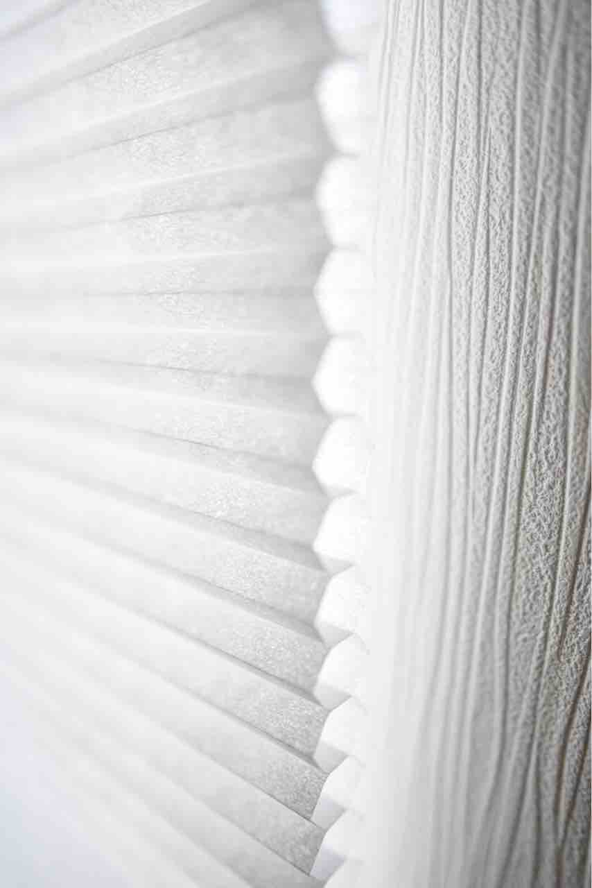 この画像の左側にも窓がありますが、すぐ隣に大きな建物が建っており、視線が気になるのでスクリーンを全開にはできません。なのでそちらにだけ、ノーマン社のツインハニカムスクリーンを付け、レース生地と普通生地とを切り替えられるようにしております。