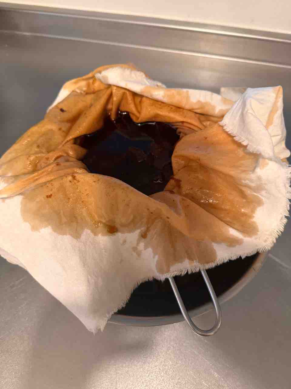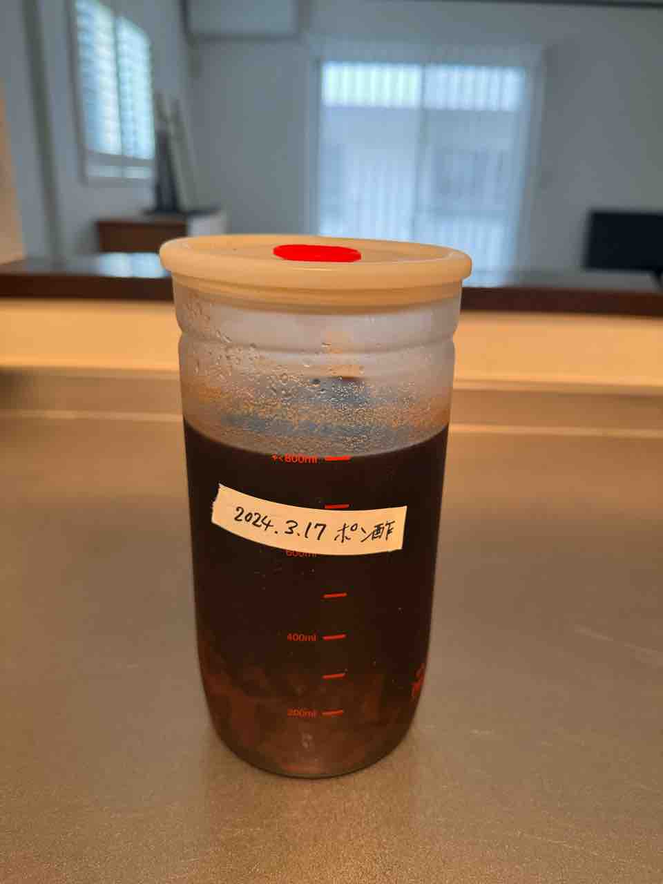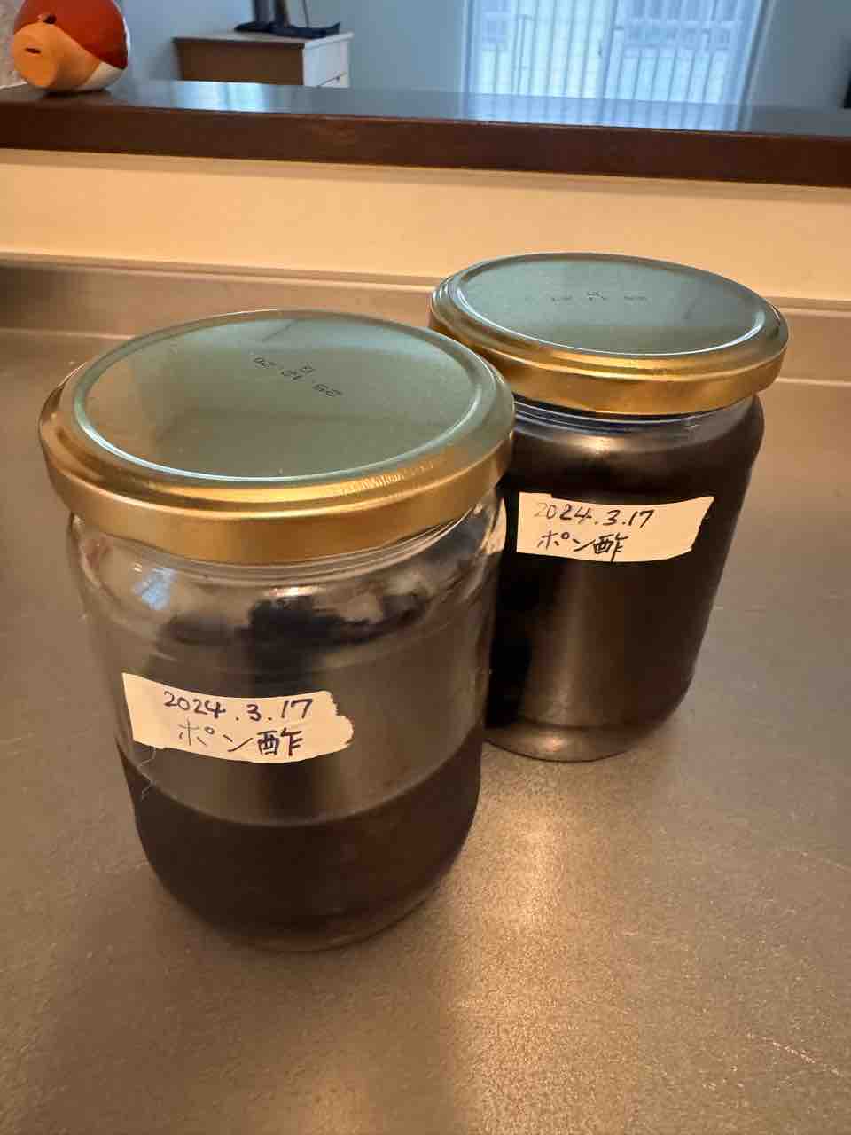 今回は少し配合を変え、たまり醤油も加えました。追いがつを をして冷蔵庫で2週間寝かせ、さらしで漉して瓶に保存しました。