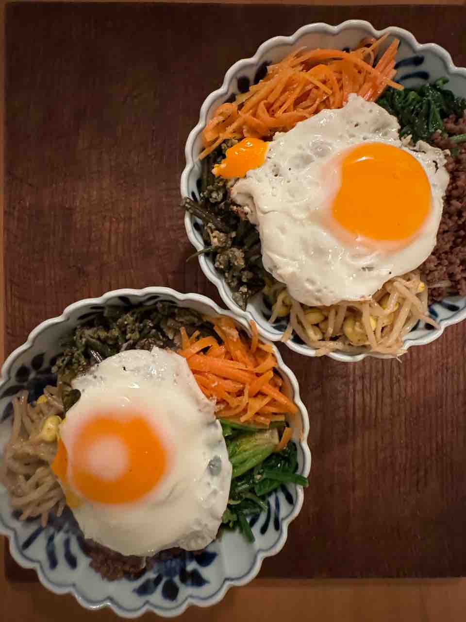 挽肉も炒めて味を付け、ビビンバを作りました。