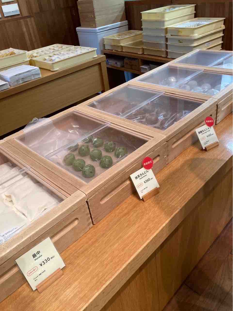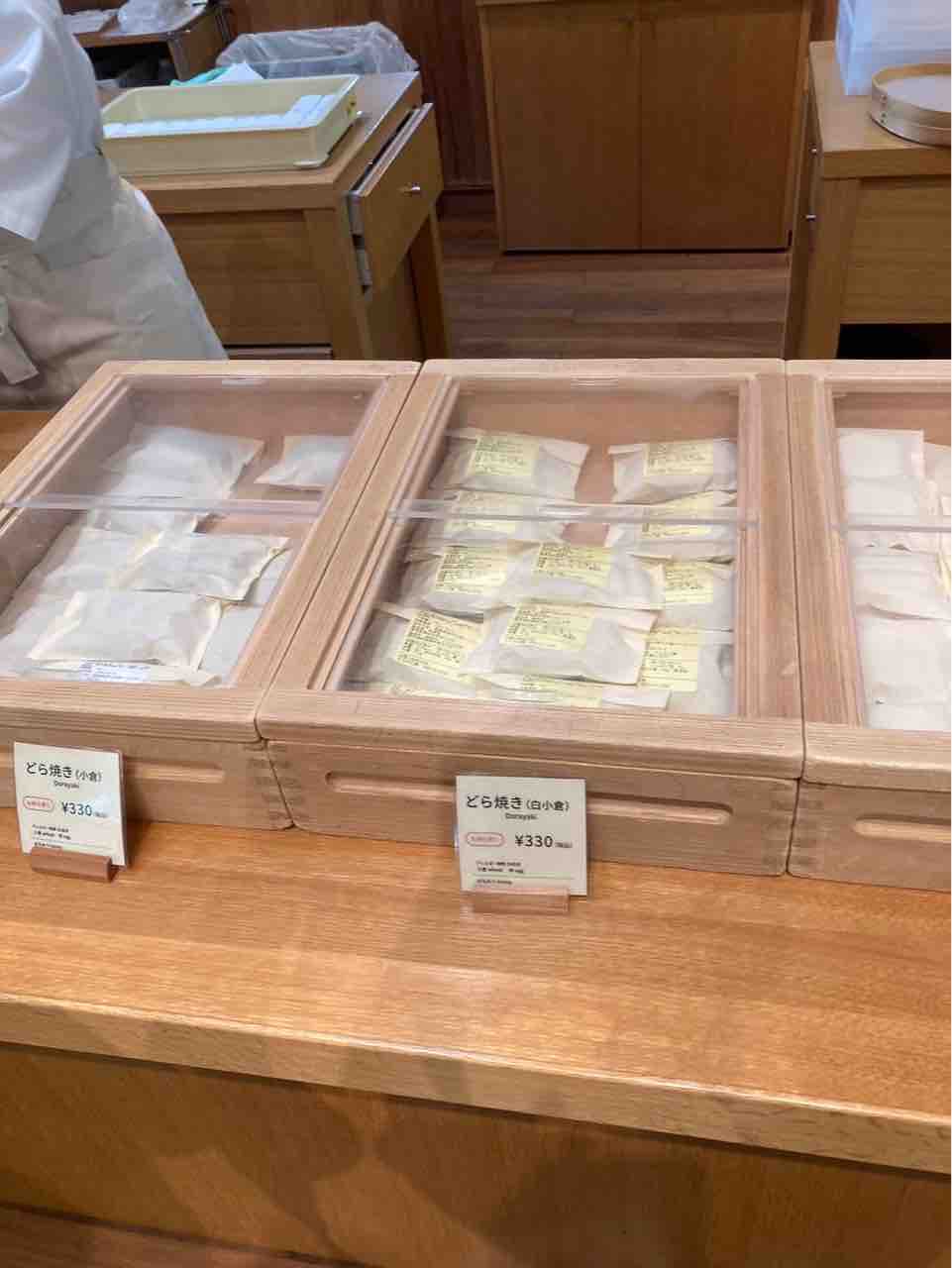 和菓子を買い、テラスで煎茶とセットで楽しむこともできます。今回は、昼食前だったのでどら焼きだけをお持ち帰りしました。