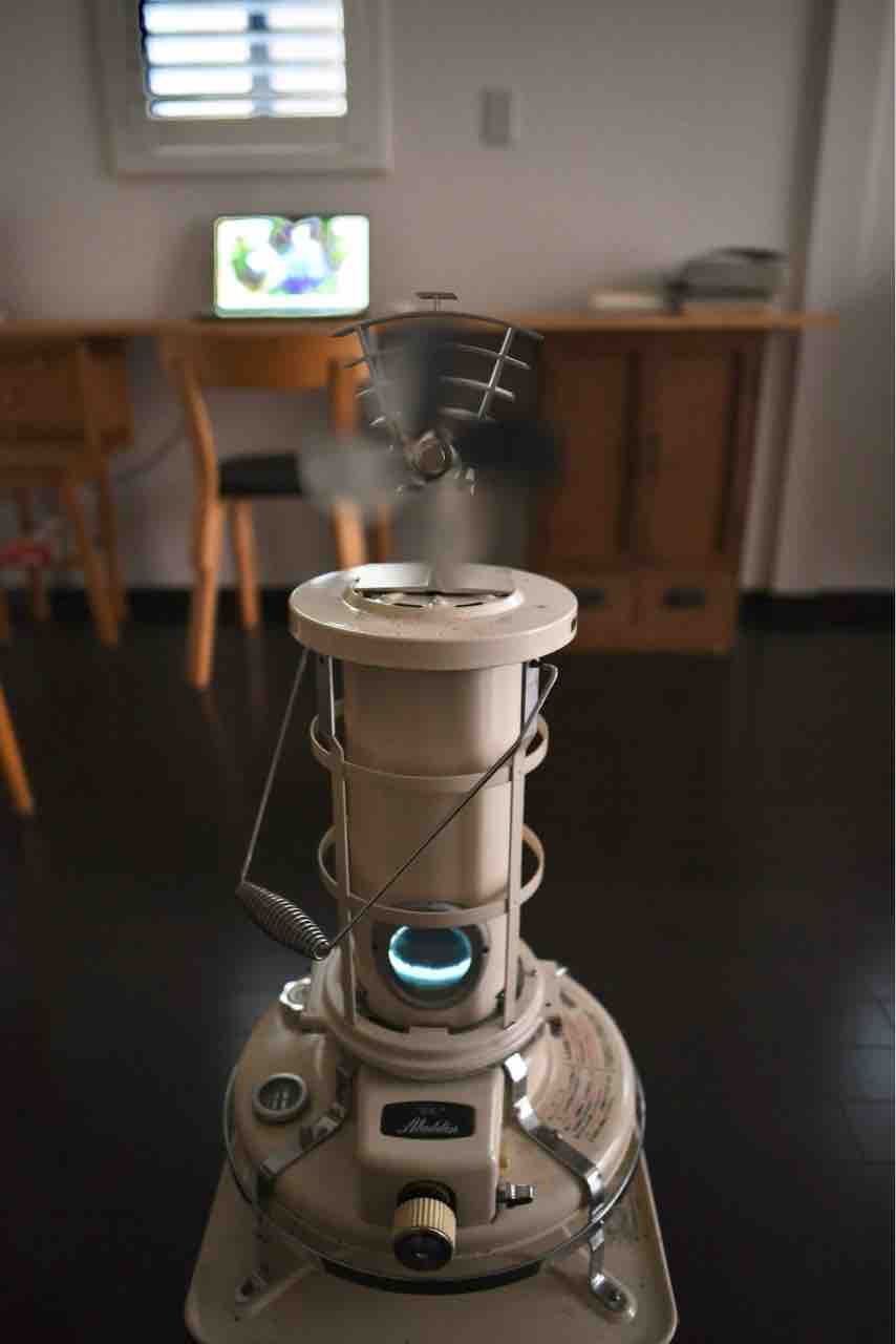エアコンを弱く付け、アラジンストーブもつけると室温が21~23℃くらいにまで上がります。ちなみに起床時には室温は10℃くらいにまで下がっています。