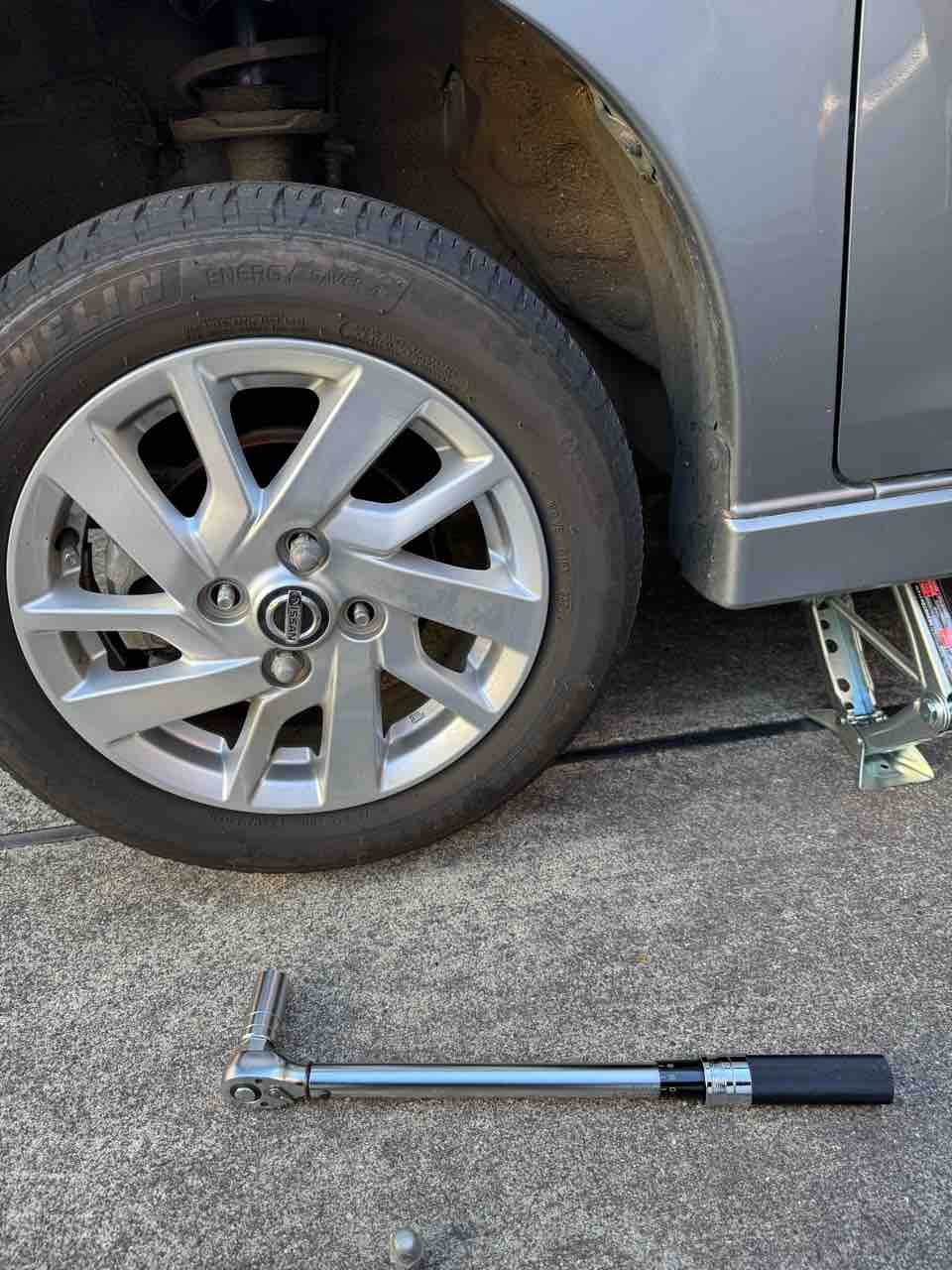 12月初旬になったらクルマのタイヤをスタッドレスタイヤに交換しました。小さいクルマなので、自分でやりました。