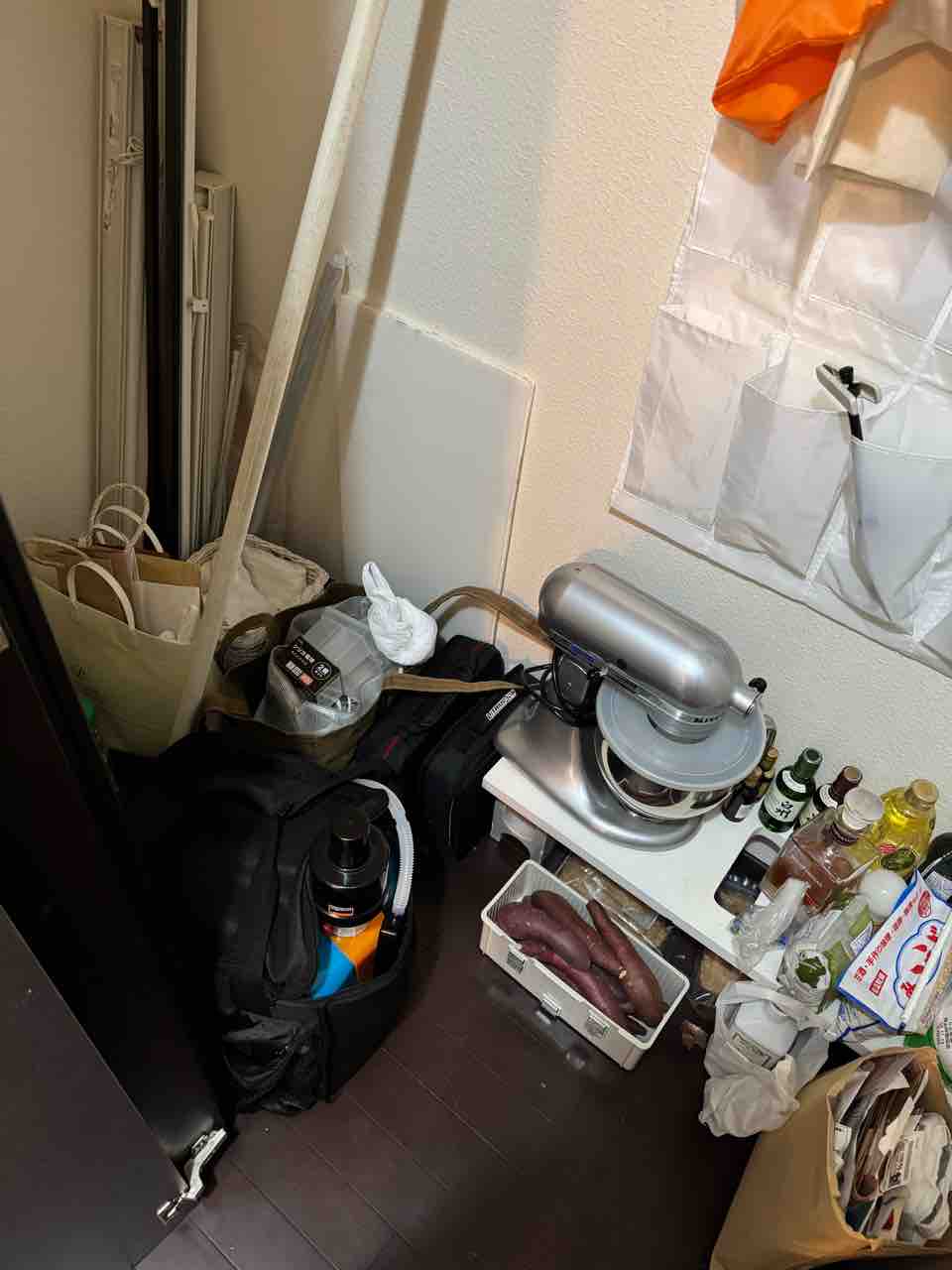 これまでは、収納家具をなるべく買わないようにしようとしていたので、床に直接色んなものを並べて置いていました。