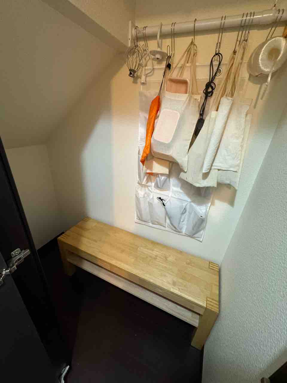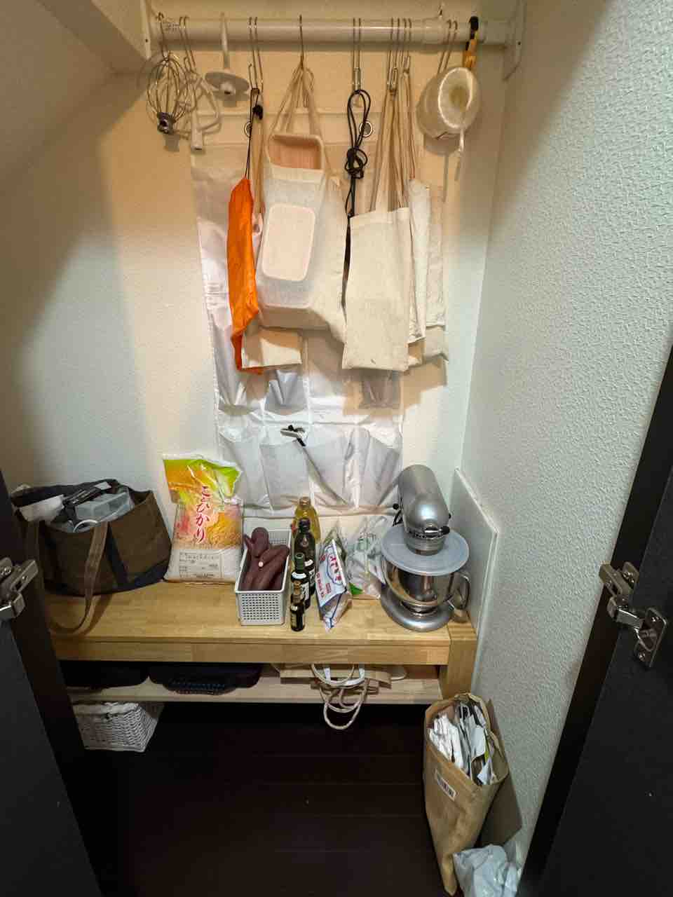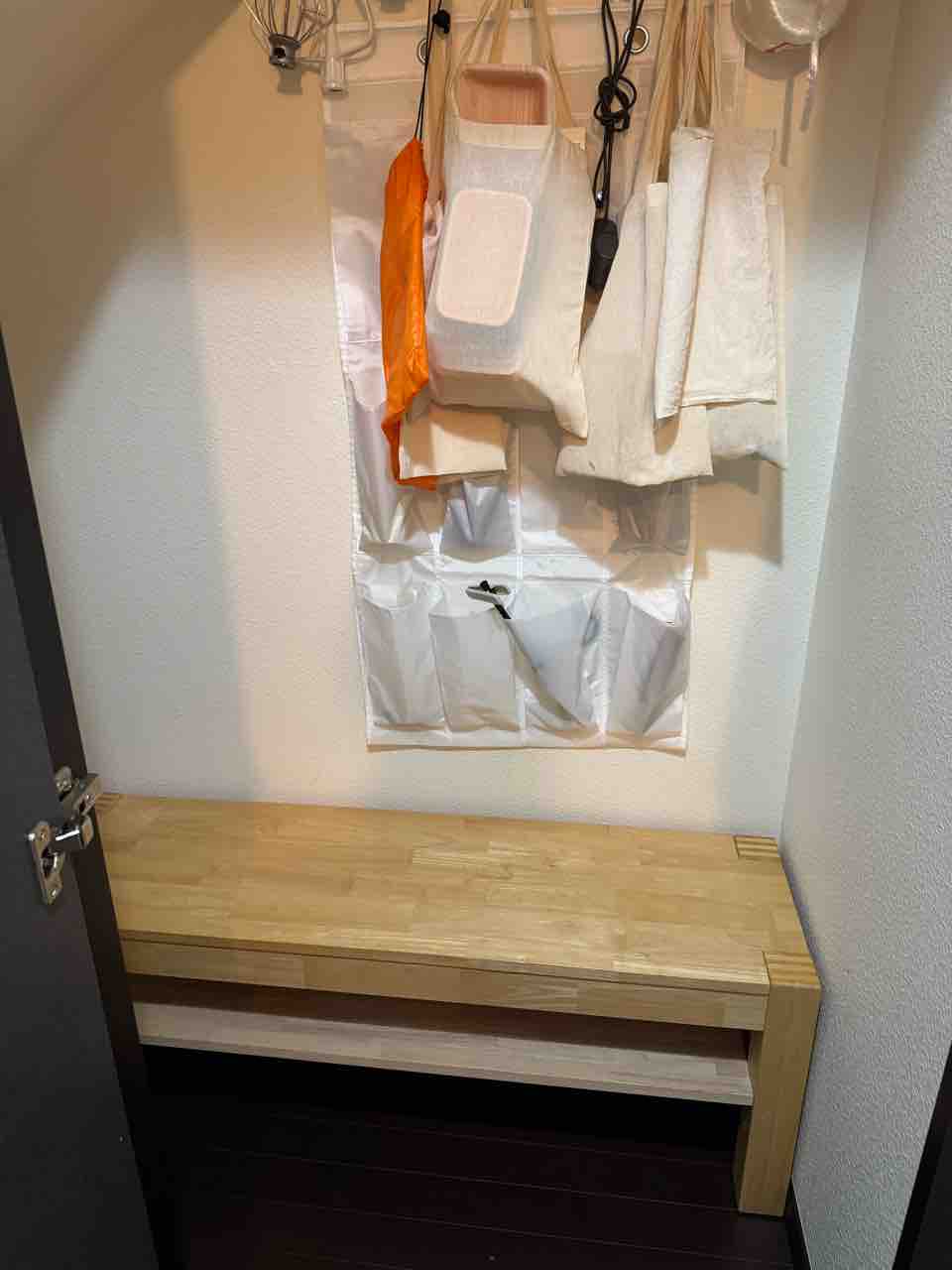 パントリーの中がすっきりし、ベンチ収納の上に物を置いたので取り出しやすくなりました。