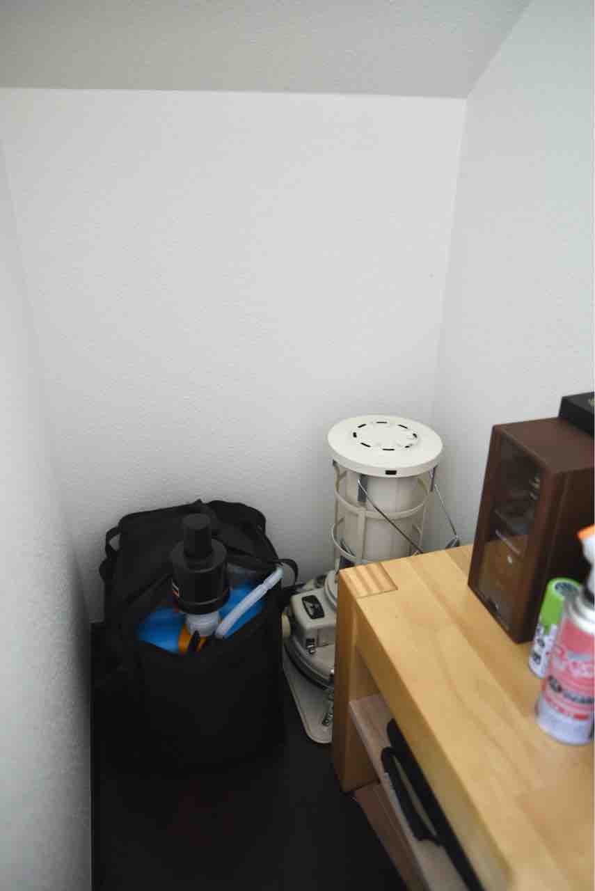 アラジンストーブは、キッチンのそばの階段下パントリーにしまっています。今回も、本体をパントリーの一番奥にしまい、その隣に灯油のポリタンクもしまいました。冬にまたすぐ取り出して使えるようになりました。