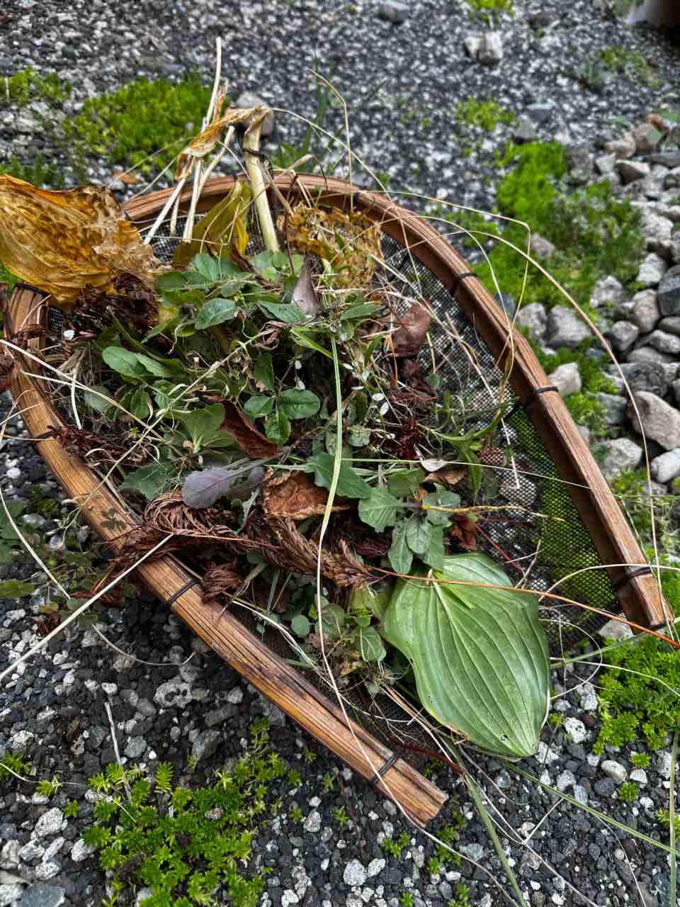 実は、手箕はホームセンターでプラスチック製のものも売られています。ですが、プラスチックフリーを志しているので、この金属と竹でできた古道具は私の今の気分にピッタリとはまりました。