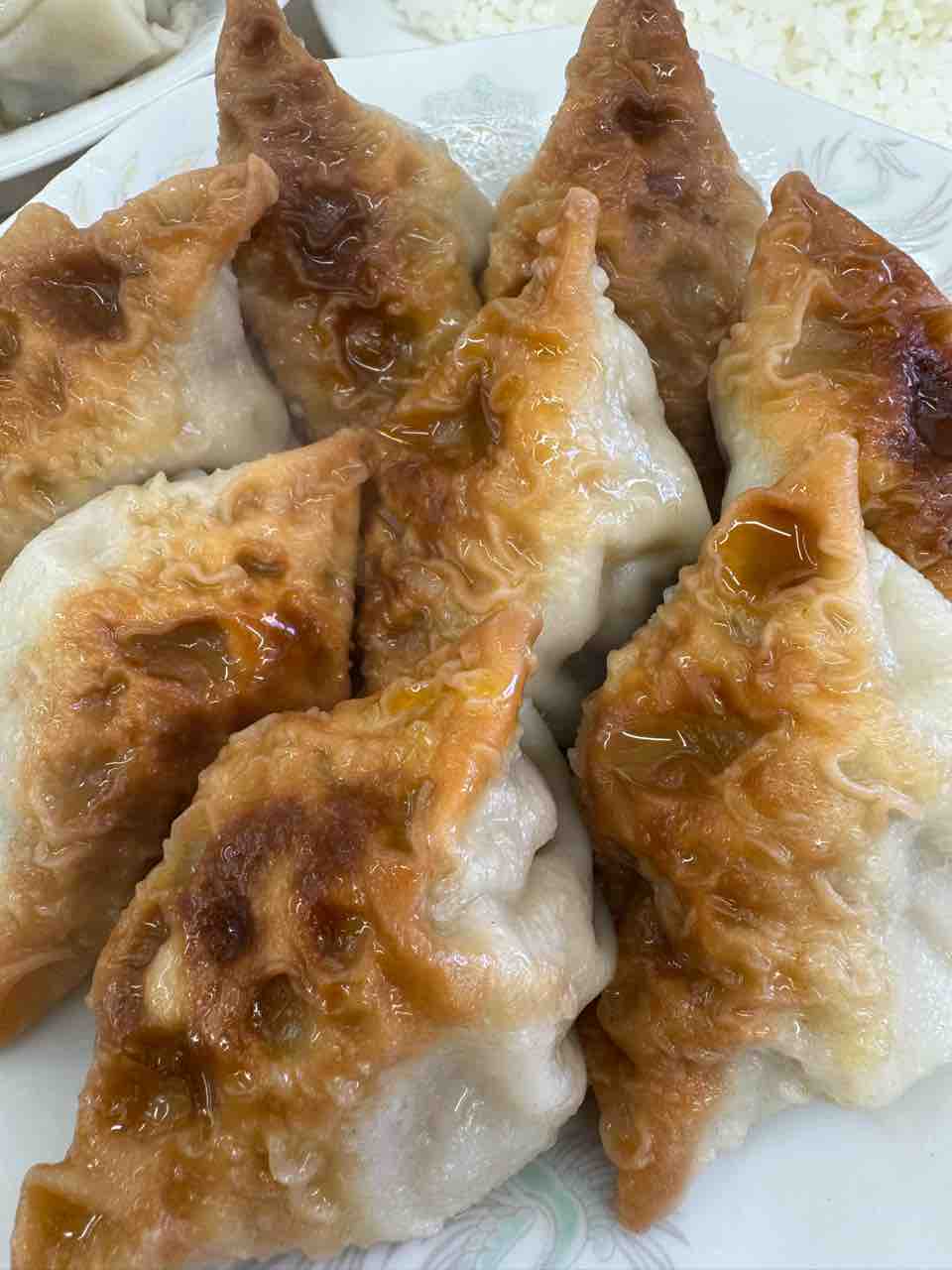 注文した餃子は、見たことがないような独特の形をしており、もちもちしていて肉感たっぷりでした。焼いてから茹でているそうです。すごくおいしかったです。