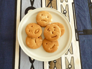 息子が、なかしましほさんのスマイルビスケットを作って食べたいというので、一緒に作りました^^ 息子は、スマイルビスケットの顔を描くのが楽しくてしょうがないみたいです。 スマイルビスケットは、全粒粉を使うのですが、ウチには全粒粉がなかったので... -