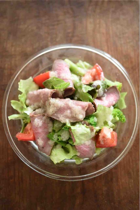 先週のぱれっと「10種S」です。 小松菜、キャベツ、長葱、ズッキーニ、人参、じゃがいも、トマト、ぶなしめじ、長芋、きゅうり ポテトサラダと、低温調理のローストビーフ、トマト、レタス でサラダにしました。 ポテトサラダは、じゃがいも、きゅうり、玉... -
