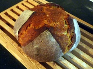 初ルヴァンリキッドにて、カンパーニュを焼きました。 粉ははるゆたか60%, グリストミル30%, 全粒粉10%です。 給水は70%くらいでした。 ルヴァンリキッドだけで焼くと元気がなくてなかなかふくらまないため、safインスタントドライイーストも追加しました...