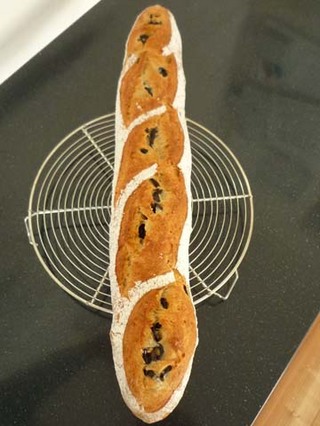 この前焼いたパンです。 粉はタイプER 60%, グリストミル40%で、酵母はルヴァンリキッドとホシノビール酵母を使いました。 給水は65%くらいです。 最近、普通のバゲットに飽きてきたので、副材料を混ぜ込んで遊んでいます。 今回は、黒オリーブを入れて「... -