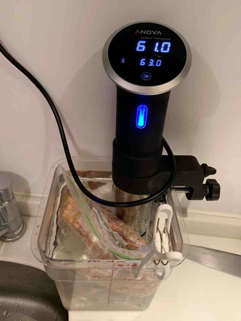 ANOVA precision cooker は棒状で、水槽などに挿すと、水温を一定に精度良く保つ装置です。 サーキュレーターにより、水を強制撹拌するため、温度ムラがありません。 何をするかって、これで、肉の火入れをします。 届いた日の夜、和牛肉のかたまりでロー...