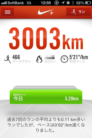 NIKE+RUNNINGアプリで記録をつけ始めてから3000kmを超えました! 1年くらい前は帰宅ランをしていましたが、夜忙しくなり、以後は昼休みランをしていました。 最近、2~4月限定で、「通勤」ランをしています。 帰宅ランと違って、往復なので一日に約11km(5... -