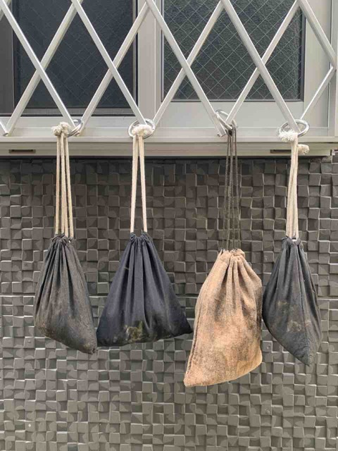 引き続き、植物性の生ごみを風乾(ふうかん、外気で自然に乾燥させること)をしています。 新居では、キッチンに窓があるので、それに掛けられた面格子の隙間から、ごみ入りの巾着袋をヒョイと出してぶら下げています。コーヒーかす、茶殻、野菜くず など... -
