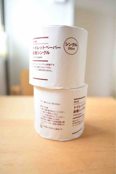 駅の無印良品が近いので、最近よく行くようになりました。 そこで見つけたのが。 「再生紙 トイレットペーパー 長巻シングル 250m」 普通に売られているトイレットペーパーは1個60mなので、これ1つでなんと約4個分にも相当する計算です。1個150円と高く感... -