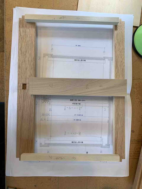 久しぶりの木工教室でした。 前回の様子↓ 桟(さん、横方向の構造部材)の鑿(のみ)によるホゾ加工を急いで仕上げました。 框(かまち)組みした側板、上桟、裏上桟、棚口上段、棚口中段、地板(下桟、裏下桟)を組上げました。やっと小抽き出しの外観が... -