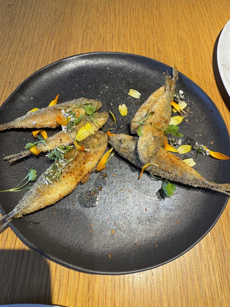 富士山サーモンのタルタル | ジンダ(豆鯵)のフリット | 平政と角鯵のマリネ サラダ仕立て