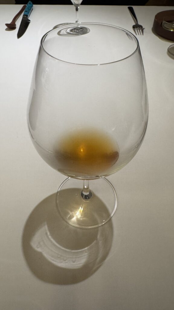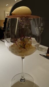 5.スペシャリテ「エール」は、天にセロリラブのアイス、グラスの中には玉ねぎのブランマンジェに鱒子、帆立、水晶文旦、さつまいも、蕪、ディル、ハーブが散りばめられ、絶品でした。