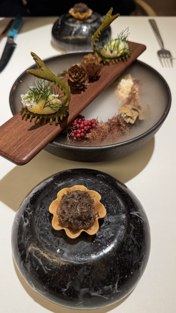 3.ブランダードに黄柚子。牛肉のリエットにトリュフを乗せて。