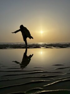 岡山から、瀬戸中央自動車道を通り、瀬戸大橋を渡って丸亀に行きました。丸亀城に登って楽しみました。その後、金比羅宮に参拝し、三豊市の父母ヶ浜(ちちぶがはま)に行きました。父母ヶ浜ではちょっと不思議な写真を撮りました。すごくおもしろかったです。